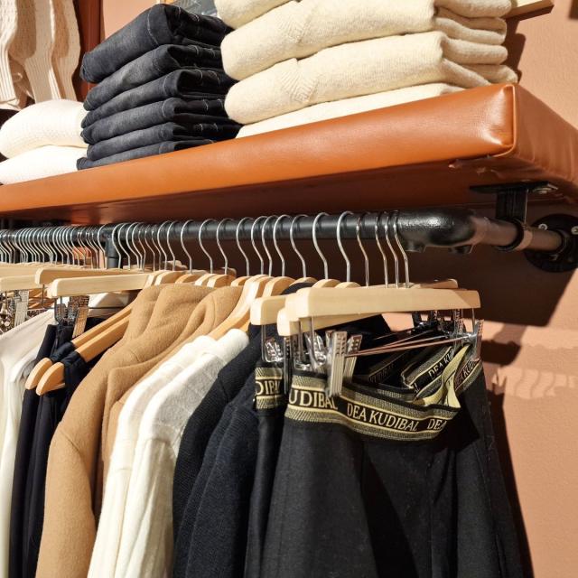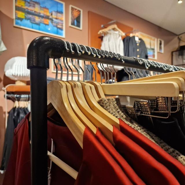 I butikk nr. 8 på Ros Torv i Roskilde er kvalitet og design i høysetet – i klesutvalget og i interiørdesignet. Klesstativer, hyller og annet butikkinnredning er montert med Clarrods Black konstruksjonsklemmer og rør.